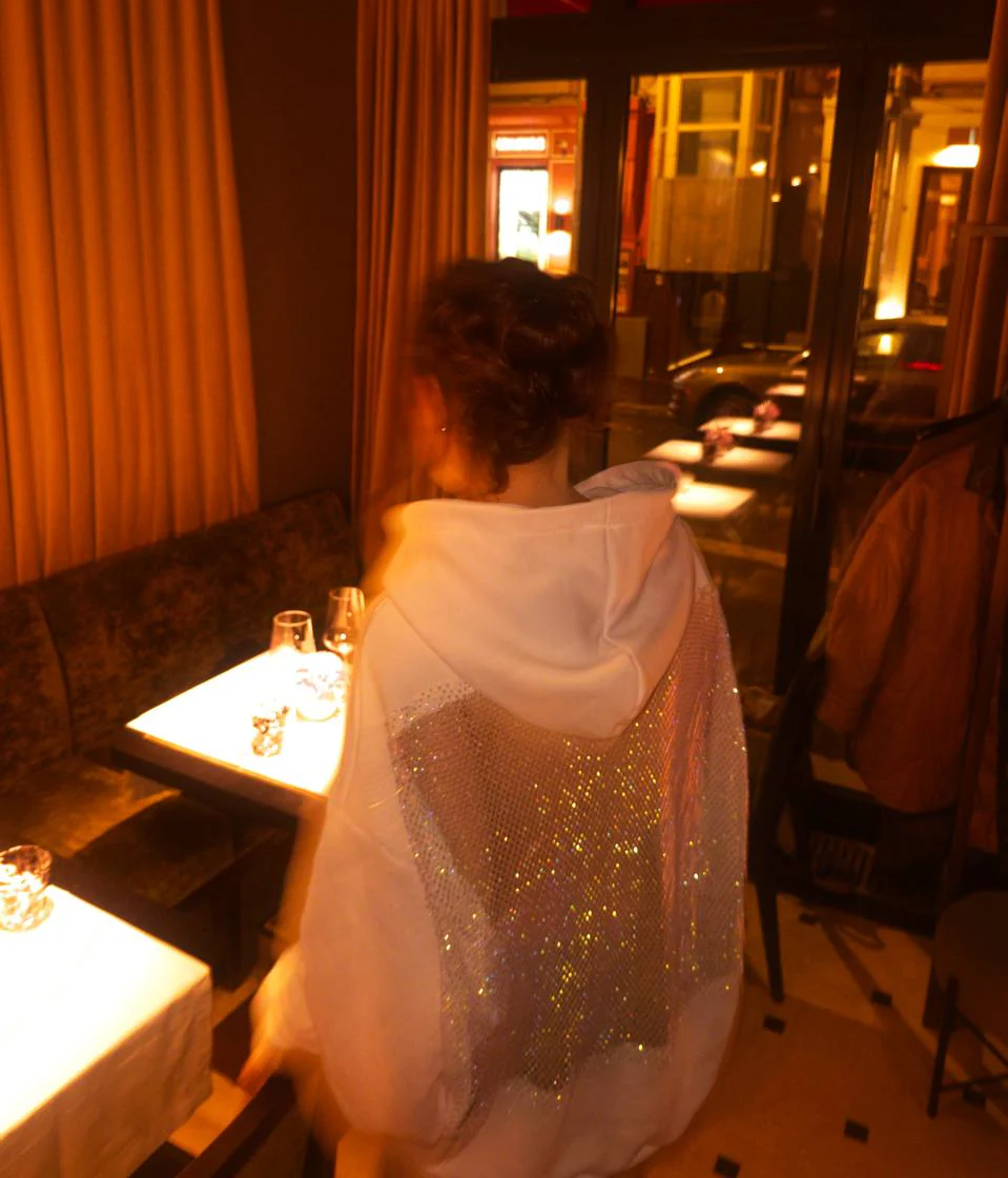 This isn't your basic hoodie. The sheer back makes you look put together without trying too hard.